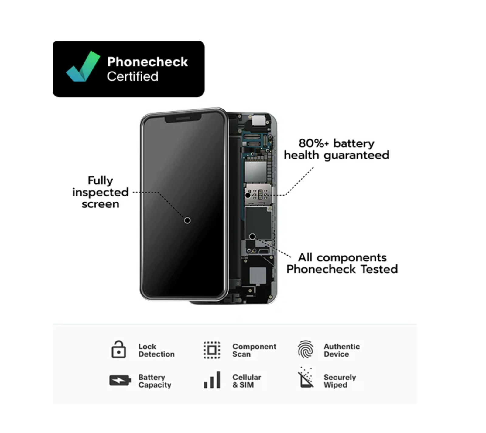 Every Phonecheck Certification tests for: